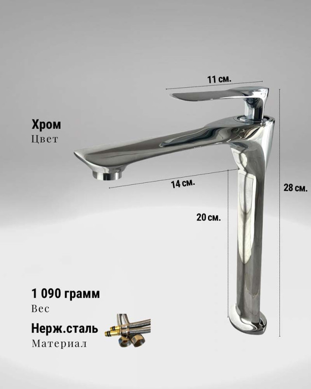 высокий, для накладной раковины на столешницу