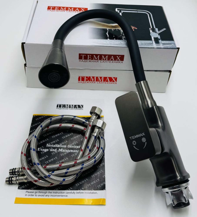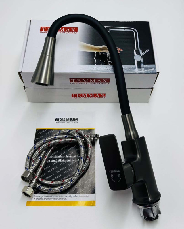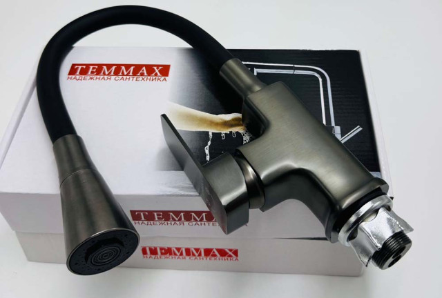 Смеситель для кухни Temmax TM-551-4 (графитовый копус с черным гусаком)